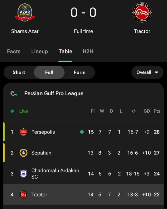 🔴 بازی تراکتور سازی تبریز و شمس آذر با تساوی بدون گل به اتمام رسید