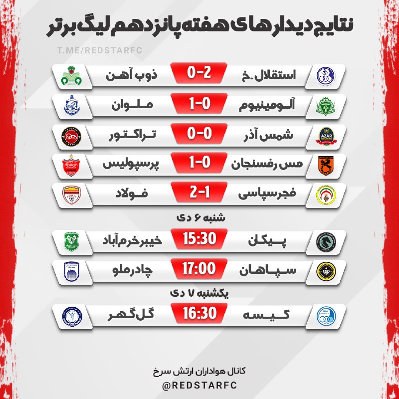 نتایج دیدار های هفته پانزدهم تا امروز + برنامه ادامه دیدار ها