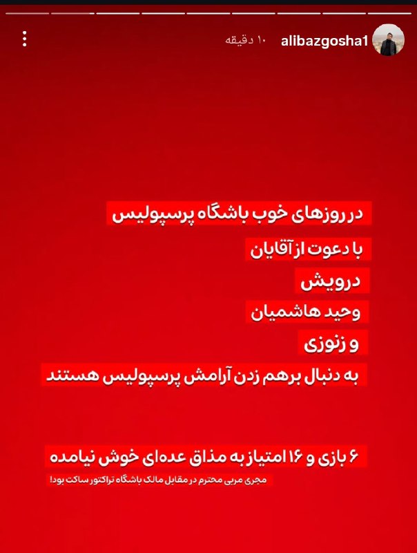 ‼️🤩استوری علی بازگشا سخنگوی پرسپولیس درباره حواشی ساختن شبهای فوتبالی برای تیم