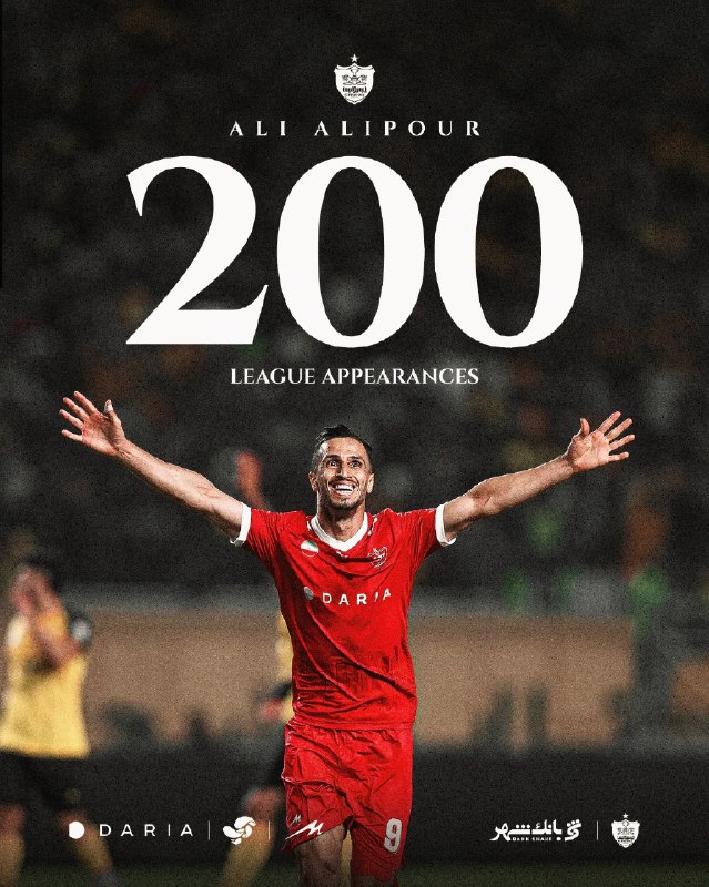 ✔️🤩علی علیپور به رکورد 200 بازی با پیراهن پرسپولیس رسید.