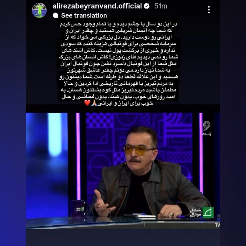 ‼️آقای بیرانوند یکی از عاملین درگیریهای اخیر تبریزیها با سایر هواداران فوتبال ایران دقیقا شما هستی. اون لحظه بجای زبون درازی میتونستی با یه عذرخواهی ساده گند کاری گذشته خودت رو کمتر نشون بدی ولی با لجبازی باعث ایجاد جو زشت و قبیح شدی!