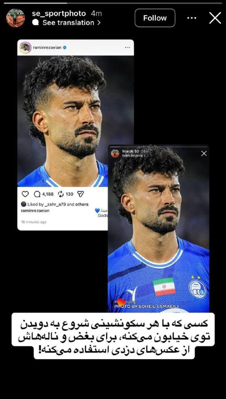 ‼️حمله یک عکاس ورزشی به رامین رضاییان بابت دزدی از عکساش و کات کردن اسمش