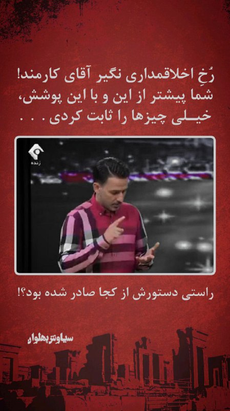 ❌رُخِ اخلاقمداری نگیر آقای کارمند، شما پیشتر از این و با این پوشش، خیـلی چیزها را ثابت کردی ... راستی دستورش از کجا صادر شده بود؟!