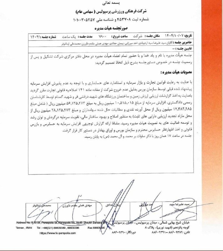 درخواست مجدد باشگاه پرسپولیس برای افزایش سرمایه