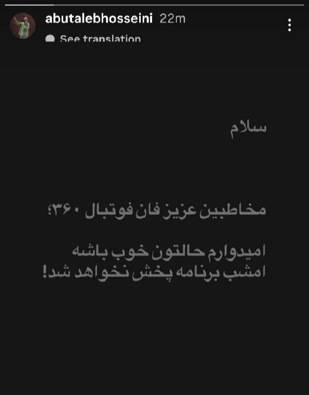 بدلیل شرایط کشور، ابوطالب حسینی قسمت این هفته فان فوتبالی خودش رو لغو کرد
