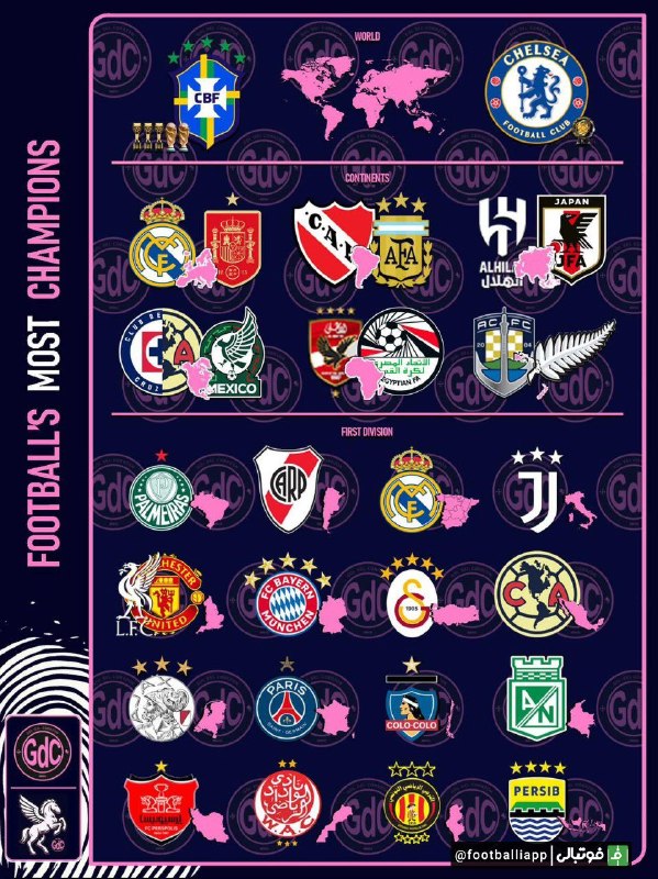 تیم‌هایی با بیشترین قهرمانی از نگاه سایت اسپانیایی GDC