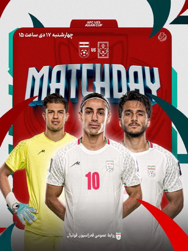 ⚪️پوستر فدراسیون فوتبال برای بازی امروز تیم امید مقابل کره جنوبی در جام ملت‌های زیر 23 سال آسیا با تصویری از محمدحسین صادقی