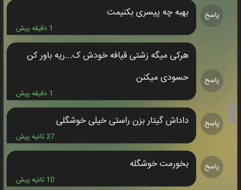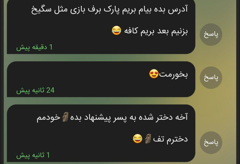چه جالب من خودم برا خودم اونا رو تایپ میکنم میفرستم