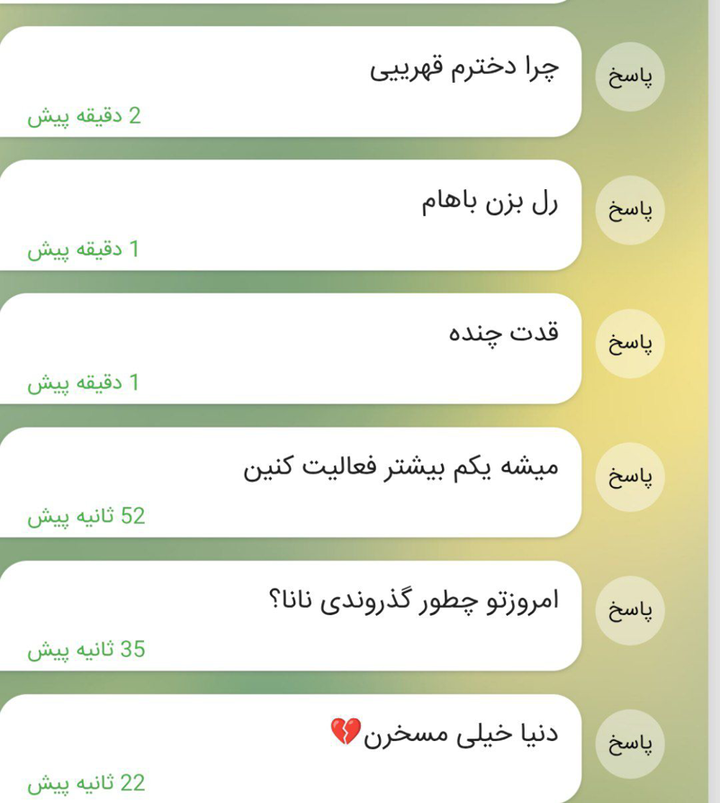 ¹س ساعت پیش ی پیام فرستادم سین نمکنی ک ماشالا