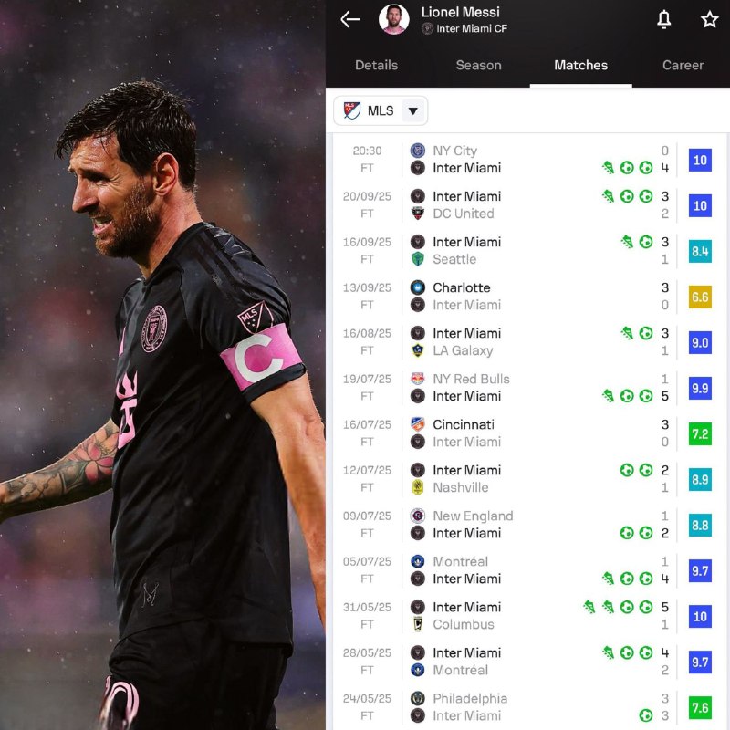 8 بریس برای اسطوره 🔥 عملکرد درخشان لیونل مسی در 13 بازی اخیر MLS؛ 19 گل و 9 پاس گل!
