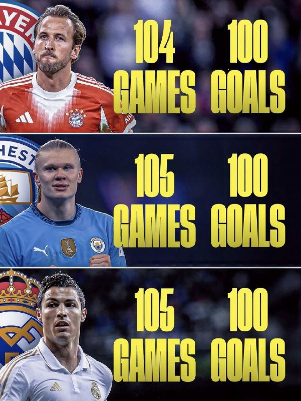 هری کین با ۱۰۰ گل در ۱۰۴ بازی برای بایرن مونیخ، سریعترین بازیکن تاریخ پنج لیگ معتبر اروپایی شد که به این تعداد گل میرسد و رکورد رونالدو و هالند را شکست