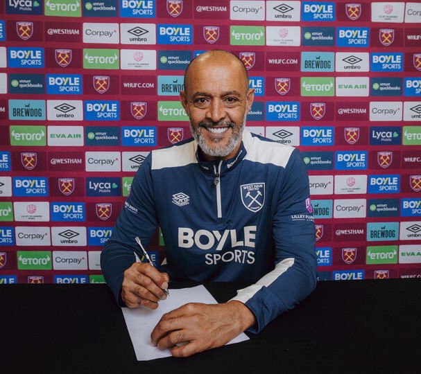 با اعلام باشگاه وست هم، نونو اسپریتو سانتو با قراردادی ۳ ساله به این تیم پیوست و دوشنبه مقابل اورتون برای اولین بار روی نیمکت این تیم مینشیند