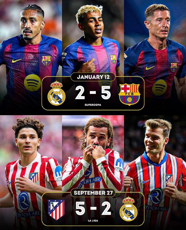 عجب سال سختی شد! ‼️ رئال مادرید در یکسال اخیر دوبار با نتیجه ۵_۲ مقابل بارسلونا و اتلتیکومادرید شکست خورده است