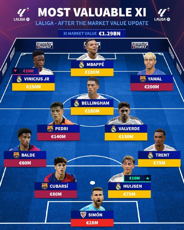 📍تیم منتخب ارزشمندترین بازیکنان لالیگا در سال ۲۰۲۵