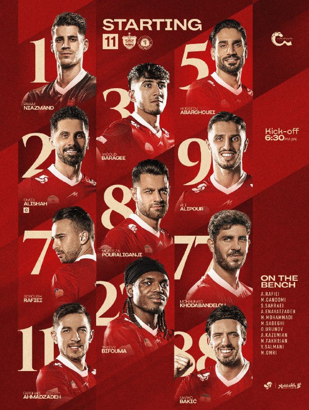 🏆 #لیگ_برتر | ترکیب پرسپولیس مقابل گل گهر / ساعت ۱۸:۳۰