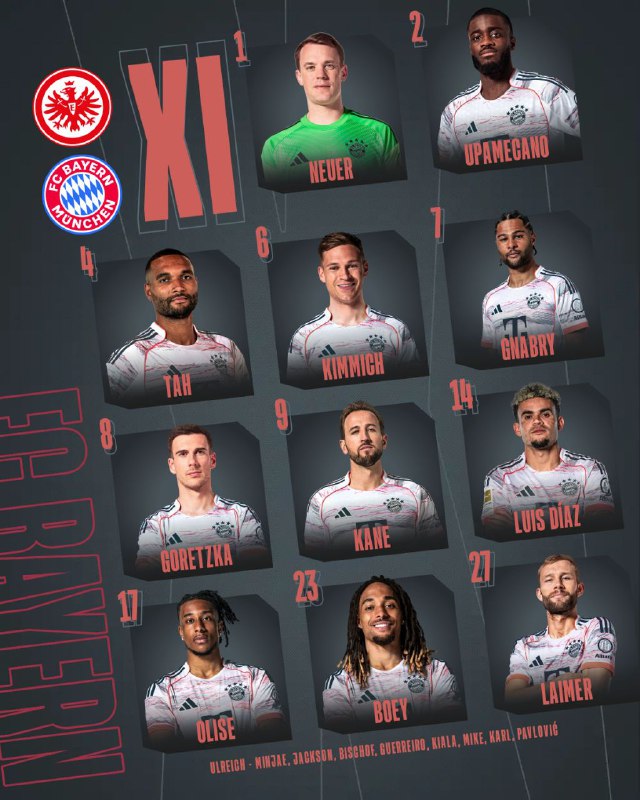 🏆 #بوندسلیگا | ترکیب بایرن مونیخ مقابل آینتراخت فرانکفورت / ساعت ۲۰:۰۰