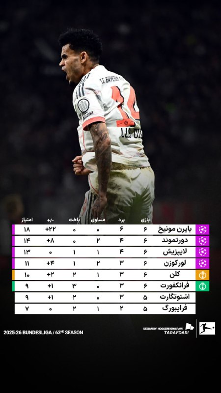 جدول #بوندسلیگا پس از بازیهای امروز