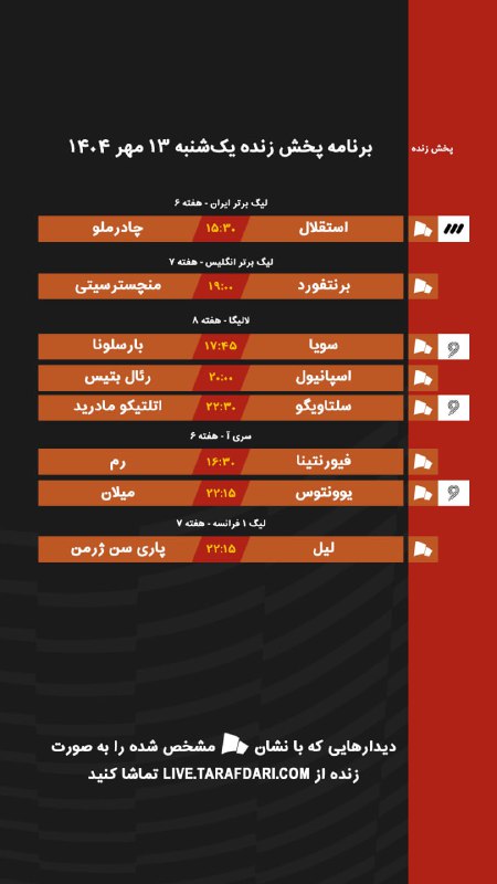 📌 برنامه پخش زنده یک‌شنبه ۱۳ مهر ۱۴۰۴