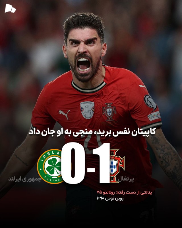 گل پیروزیبخش روبن نوس به ایرلند در دقیقه 1+90 (پرتغال 1_0 ایرلند)