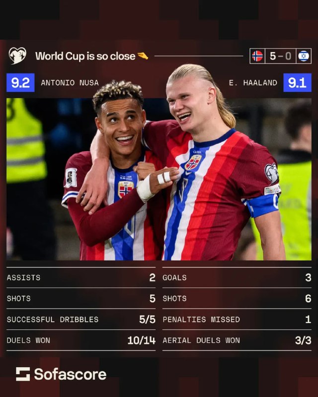 📊برد پرگل نروژ بازهم در سایه درخشش هالند