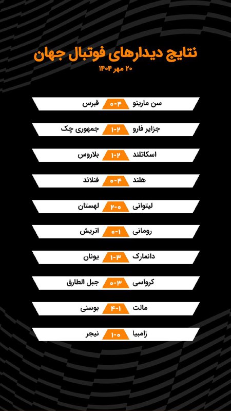 ⚽️نتایج دیدارهای امشب فوتبال جهان، ۲۰ مهر ۱۴۰۴
