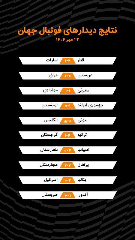 🔶 نتایج بازی‌های مهم امروز؛ پیروزی قاطع اسپانیا و انگلیس و تساوی پرتغال در شب رکوردشکنی رونالدو