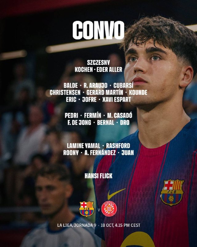 🔵🔴 لیست بازیکنان بارسلونا برای دیدار مقابل ژیرونا