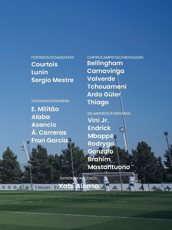 📝لیست بازیکنان دعوت شده رئال مادرید برای دیدار مقابل ختافه