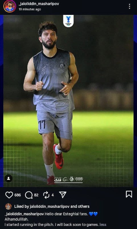 جلال‌الدین ماشاریپوف، ستاره ازبک استقلال، پس از مصدومیتی در بازی دوستانه که پارگی رباط صلیبی اعلام شده بود، اعلام کرد مصدومیتش جدی نیست و نیازی به عمل ندارد
