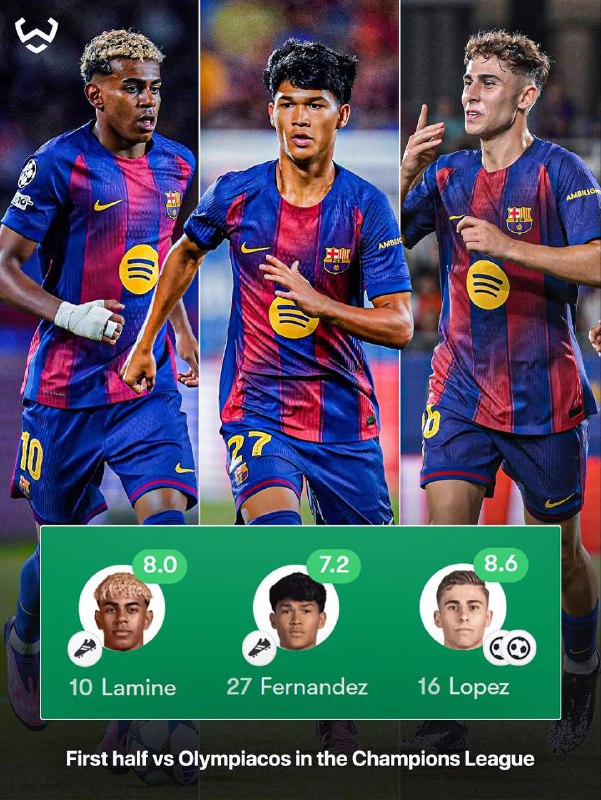 لامین یامال و درو فرناندز، دو ستاره جوان لاماسیا، مقابل المپیاکوس نقش اصلی را در گل‌های بارسلونا داشتند