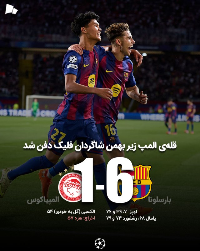 🏆 #لیگ_قهرمانان_اروپا | بارسلونا 6_1 المپیاکوس / المپ در آتش مونتجوئیک؛ خدایان یونان زانو زدند