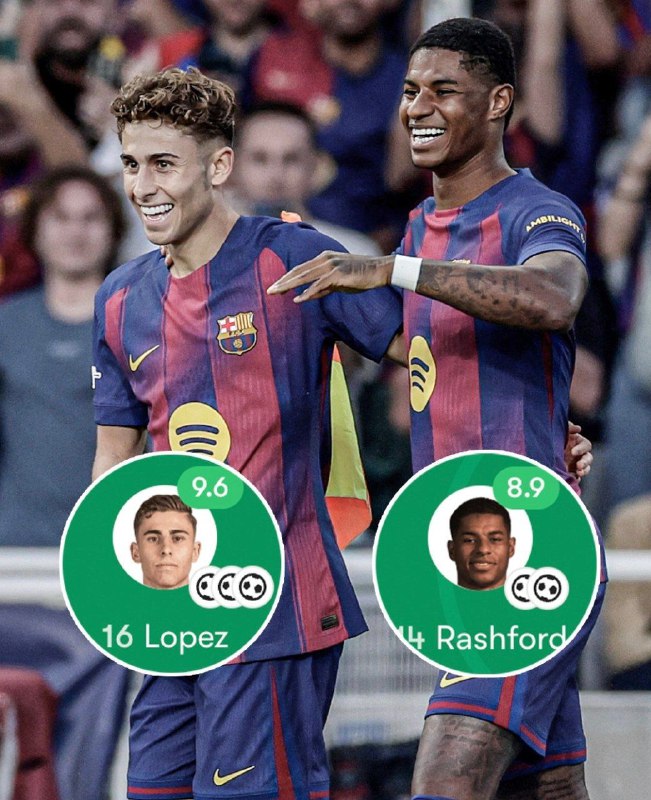 🔥 از میان ۶ گل بارسلونا در دیدار مقابل المپیاکوس، فرمین لوپز و مارکوس رشفورد در ۵ گل سهم داشتند