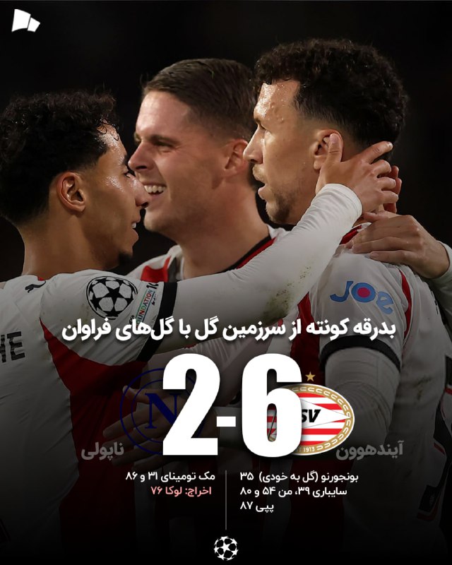 🔸 ناپولی برای نخستینبار در تاریخ رقابتهای اروپایی ۶ گل دریافت کرد