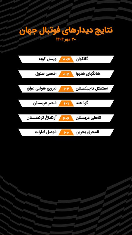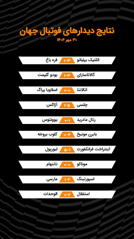 ⚽️نتایج دیدارهای امشب فوتبال جهان، ۳۰ مهر ۱۴۰۴