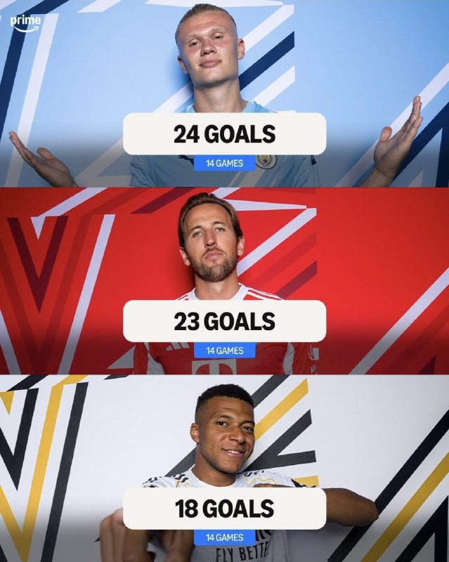 🔥🌟آمار گلزنی فوق العاده ارلینگ هالند، هری کین و کیلیان امباپه در بازیهای باشگاهی و ملی در هفتههای نسبتأ ابتدایی فصل