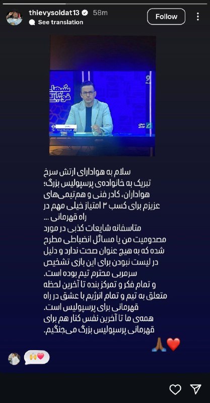 📲واکنش اینستاگرامی بیفوما نسبت به غیبت در بازی پرسپولیس - ذوب آهن