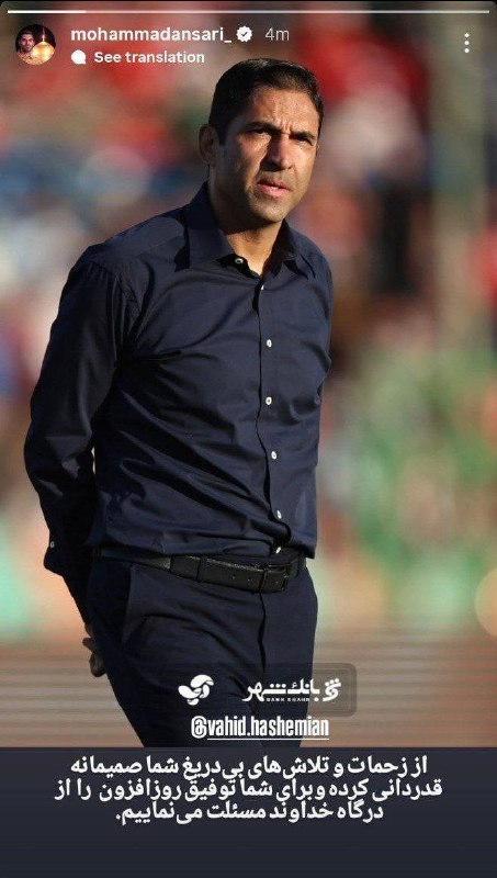 معاون ورزشی باشگاه پرسپولیس از زحمات این سرمربی تشکر کرد و برای او آرزوی توفیق نمود