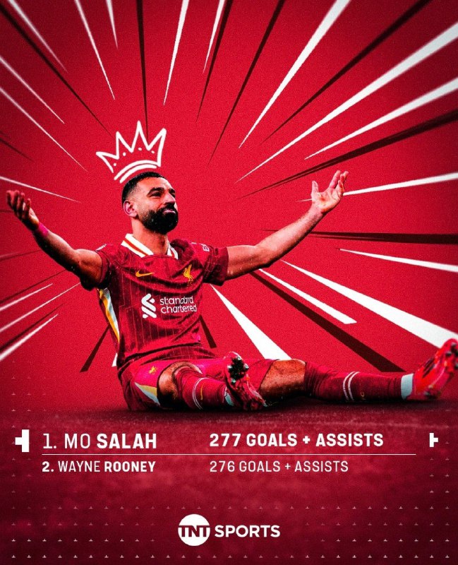 📊 رکورد بیشترین مشارکت گل در یک باشگاه لیگ برتری اکنون در اختیار محمد صلاح است با مشارکت در ۲۷۷ گل (گل + پاس گل)