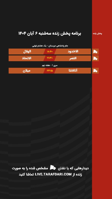 📌 برنامه پخش زنده سه‌شنبه ۶ آبان ۱۴۰۴