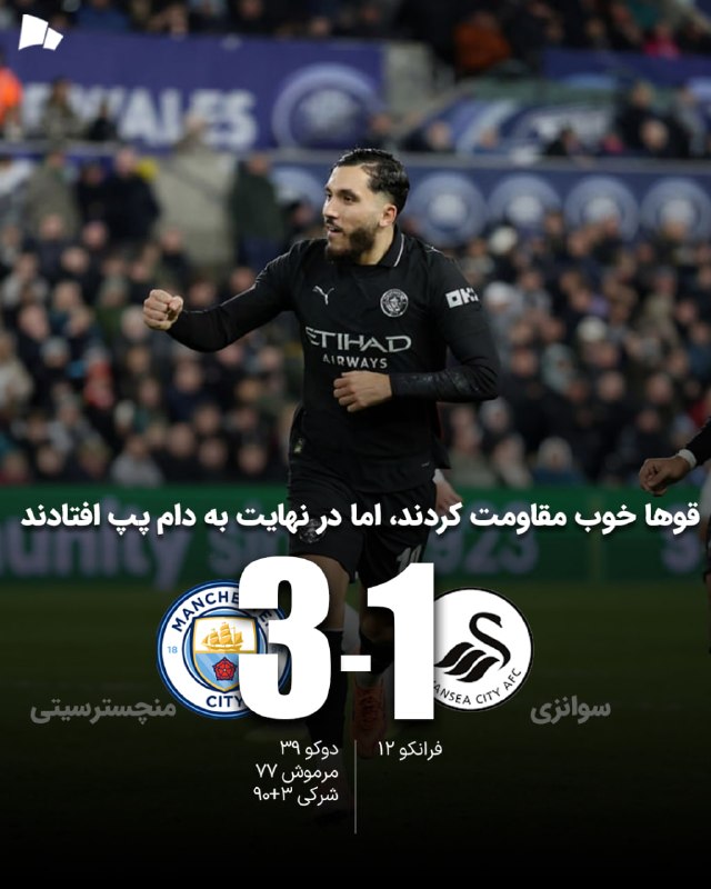 🏆 لیگ کاپ انگلیس | سوانزی 1_3 منچسترسیتی /قوها خوب مقاومت کردند، اما در نهایت به دام پپ افتادند