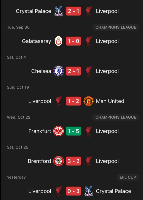 🔴 6 شکست و تنها یک پیروزی، حاصل کار لیورپول در 7 دیدار اخیر