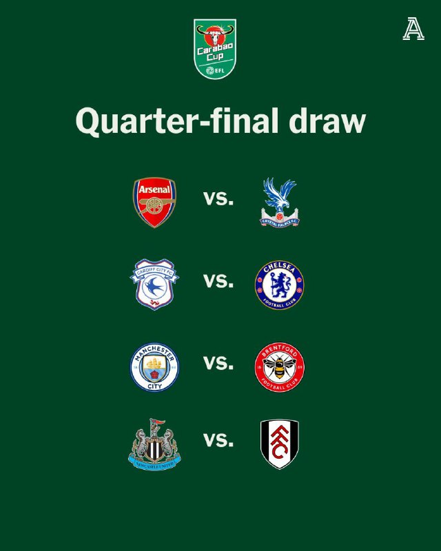 🔶 قرعهکشی مرحله یکچهارم نهایی لیگ کاپ انگلیس؛ قرعه سخت آرسنال