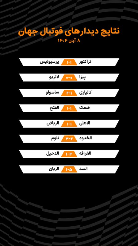 🔶 نتایج بازی‌های مهم امروز، ۸ آبان ۱۴۰۴