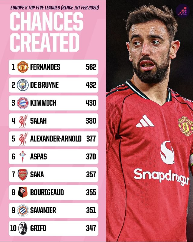 سایت اماری اپتا بهترین بازیکنان در ۵ لیگ معتبر اروپایی از نظر ثبت فاکتور آماری "ساخت موقعیت" از فوریه ۲۰۲۰ تا به اکنون را بررسی کرده است که نام چند ستاره نامی از لیگ انگل