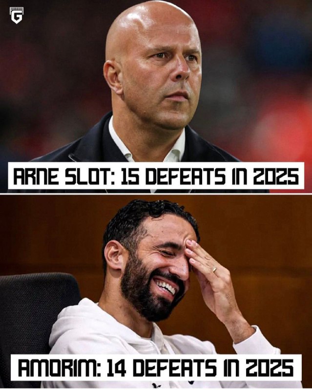به نقل از گل، آرنه اشلوت در سال ۲۰۲۵ متحمل ۱۵ شکست با لیورپول شده است، این در حالی است که آموریم در همین مدت زمان با منچستریونایتد باختهای کمتری را تجربه کرده است