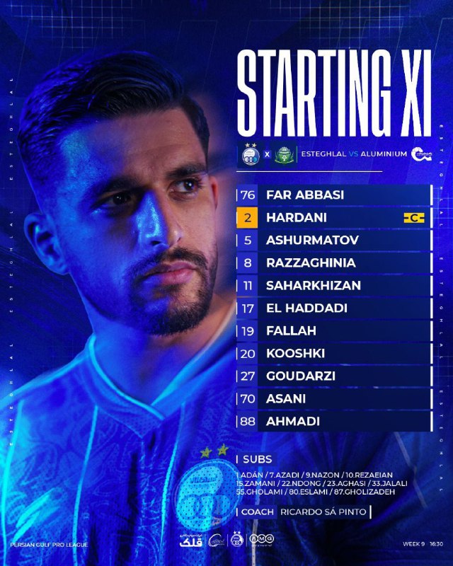 🏆#لیگ_برتر | ترکیب استقلال مقابل آلومینیوم / ساعت ۱۶:۳۰