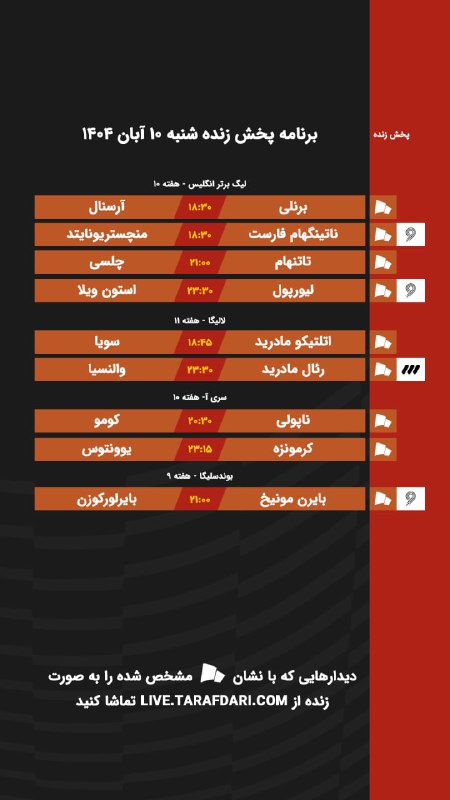 📌 برنامه پخش زنده شنبه ۱۰ آبان ۱۴۰۴