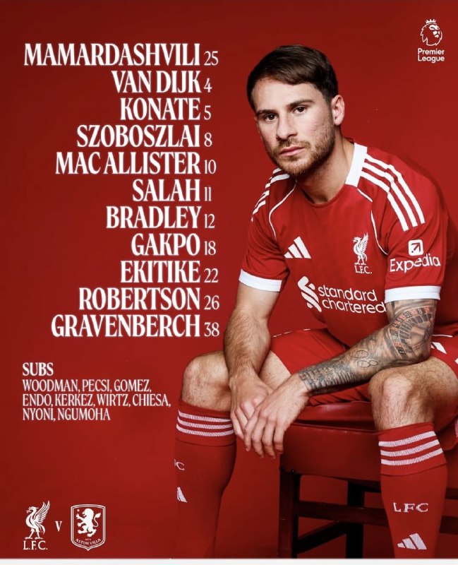 🏆 #لیگ_برتر_انگلیس | ترکیب لیورپول و استون ویلا / ساعت ۲۳:۳۰