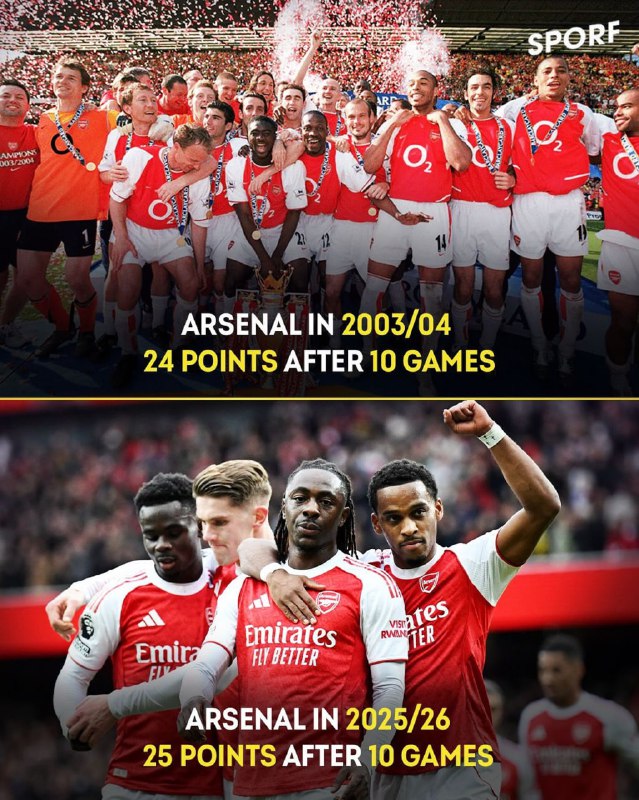 📊 آرسنال آرتتا و بالاتر از تیم شکست ناپذیر فصل ۰۴-۲۰۰۳ در ۱۰ بازی ابتدایی