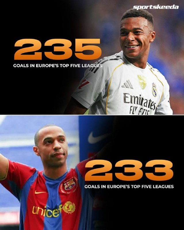کیلیان امباپه با پشت سر گذاشتن تیری آنری، به سومین گلزن برتر تاریخ فوتبال فرانسه در پنج لیگ معتبر اروپا تبدیل شد!